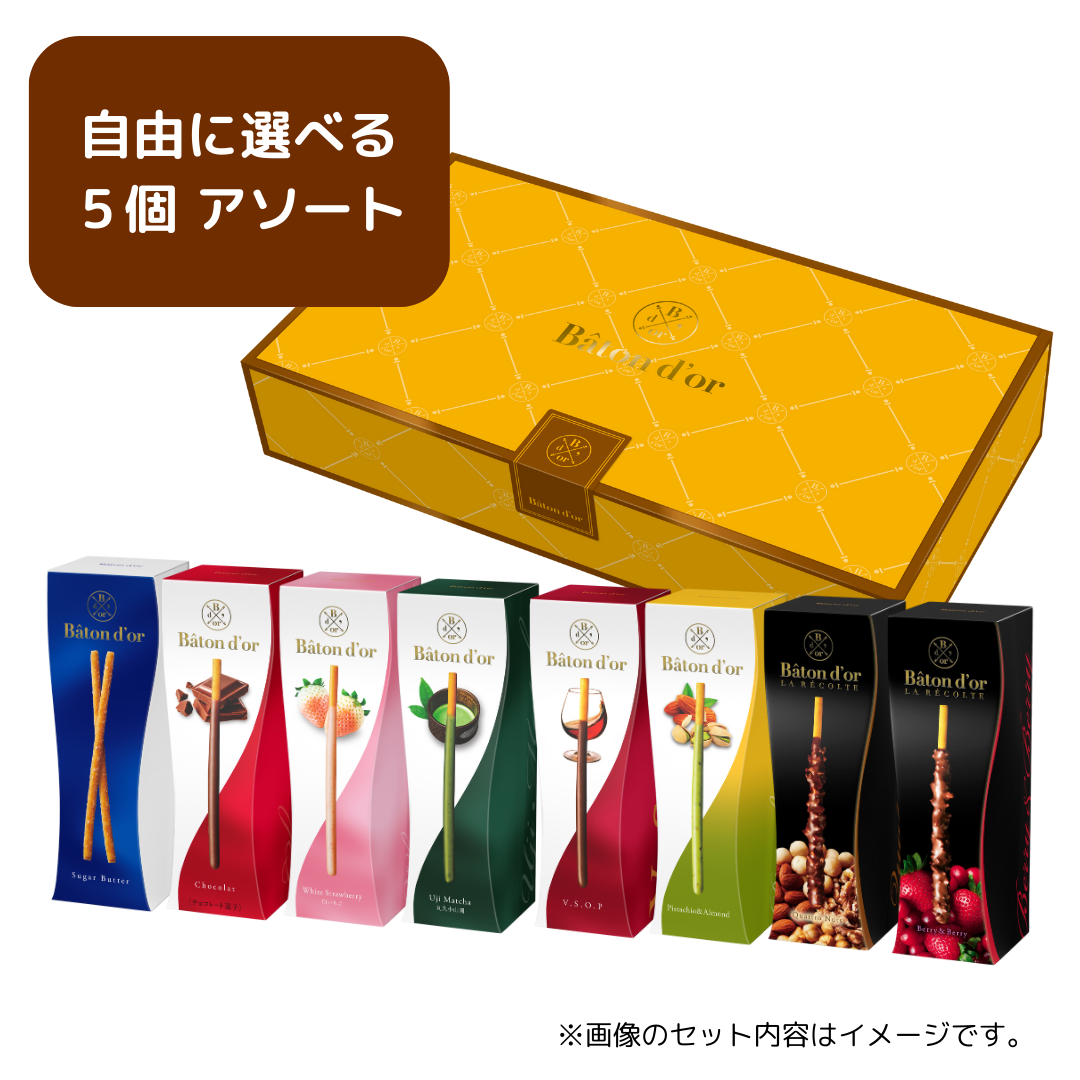 バトンドール 中身が選べる5個アソート 5個箱サイズ:19㎝×34.5cm×6.5cm 手提げ袋【大】が1セットに1枚つきます。