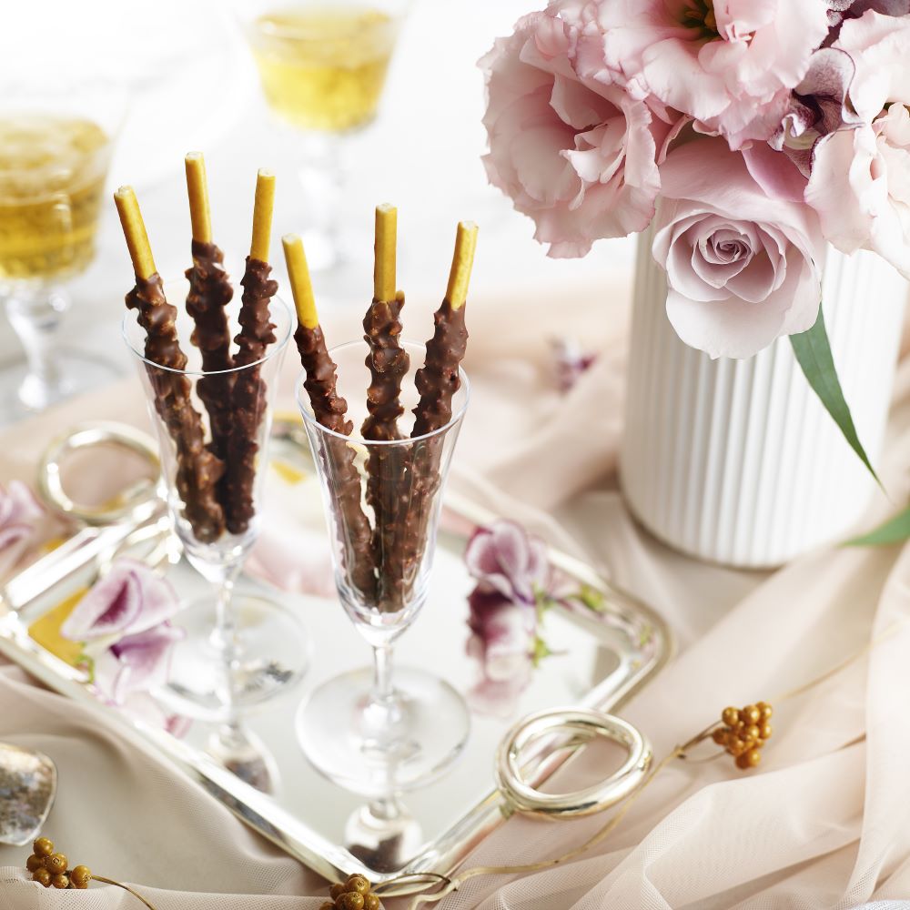 フランス語で「実り」を意味する「ラ レコルト」澄ましバターをしみ込ませたバターリッチプレッツェルに、オリジナルレシピのチョコレートを纏いぎっしりと散りばめた