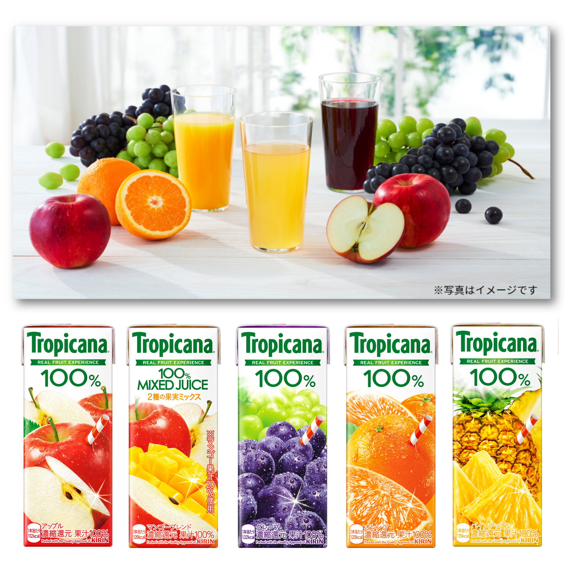 『トロピカーナ100% フルーツジュース』は果実のおいしさと栄養がつまっています。果実そのものの味わいが楽しめるフルーツ100%のジュースです。