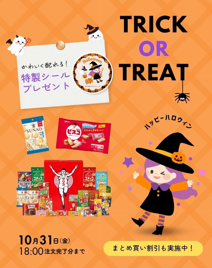 グリコダイレクトショップではかわいく配れるシールのプレゼントや、買えば買うほどお得になるキャンペーンを実施します。