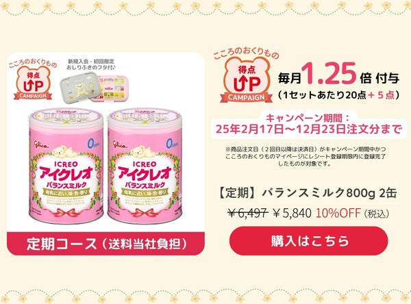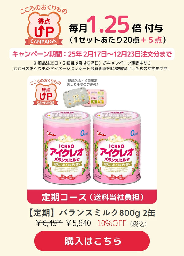 グリコダイレクトショップで対象アイクレオ商品を購入すると、こころのおくりもの得点が通常より多くもらえちゃう!
