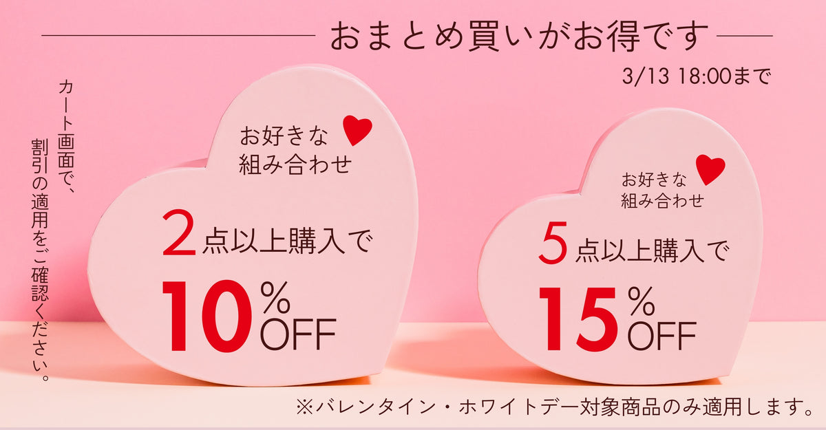 ・対象商品を2点以上お買い上げいただくと自動で割引クーポンが適用されます。カート画面で、割引が適用されていることをご確認ください。