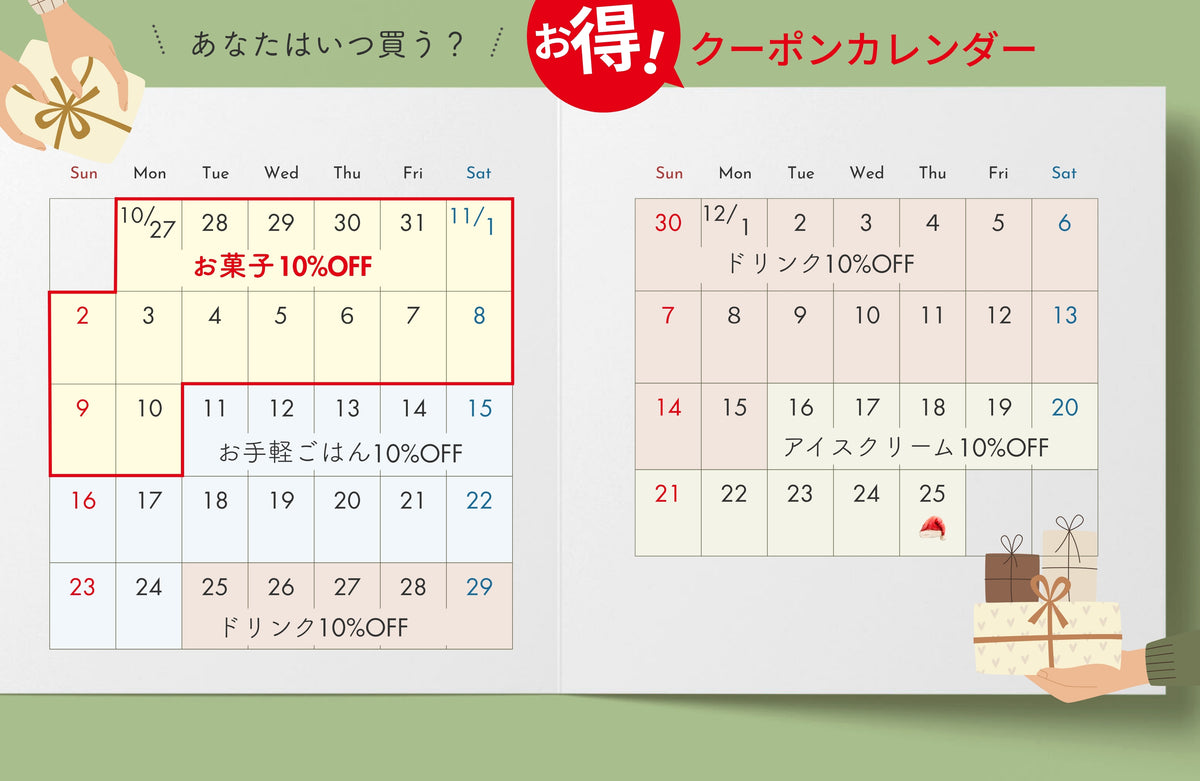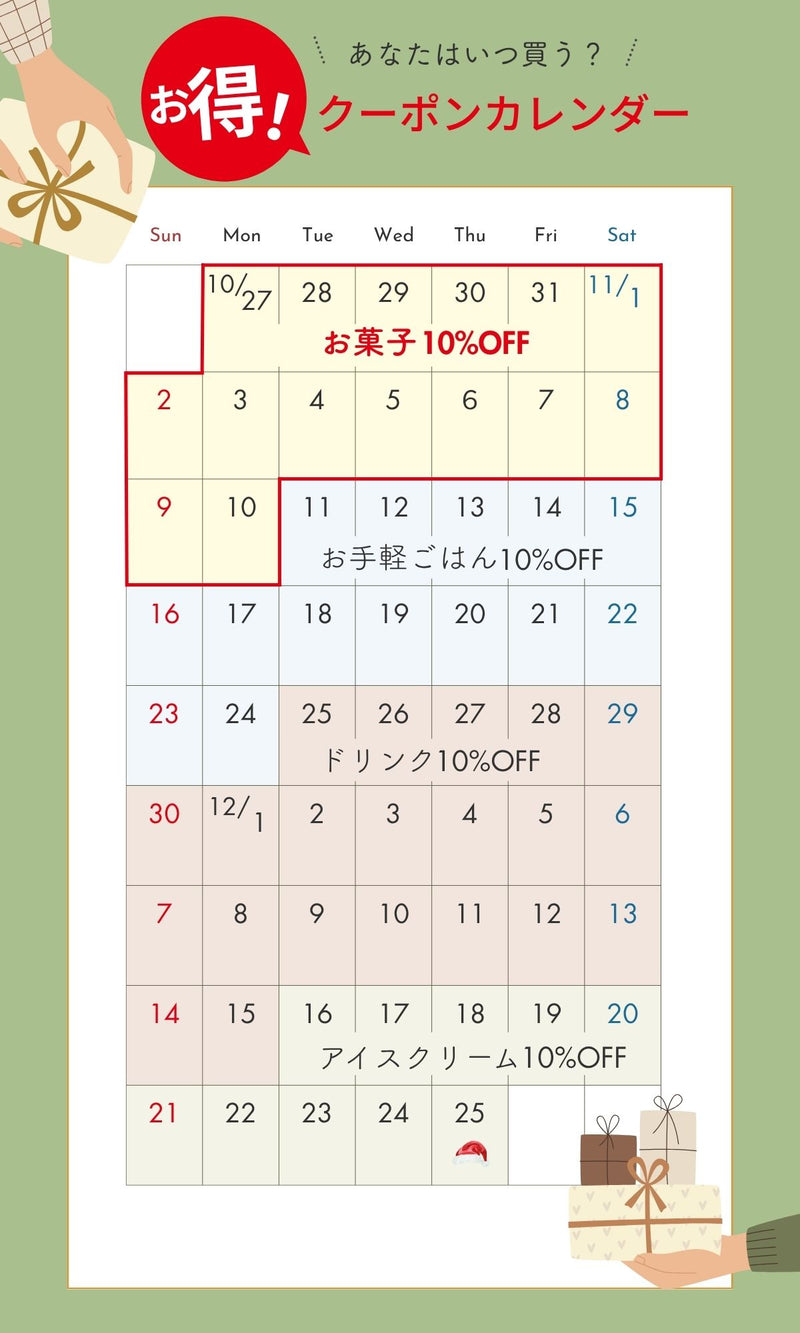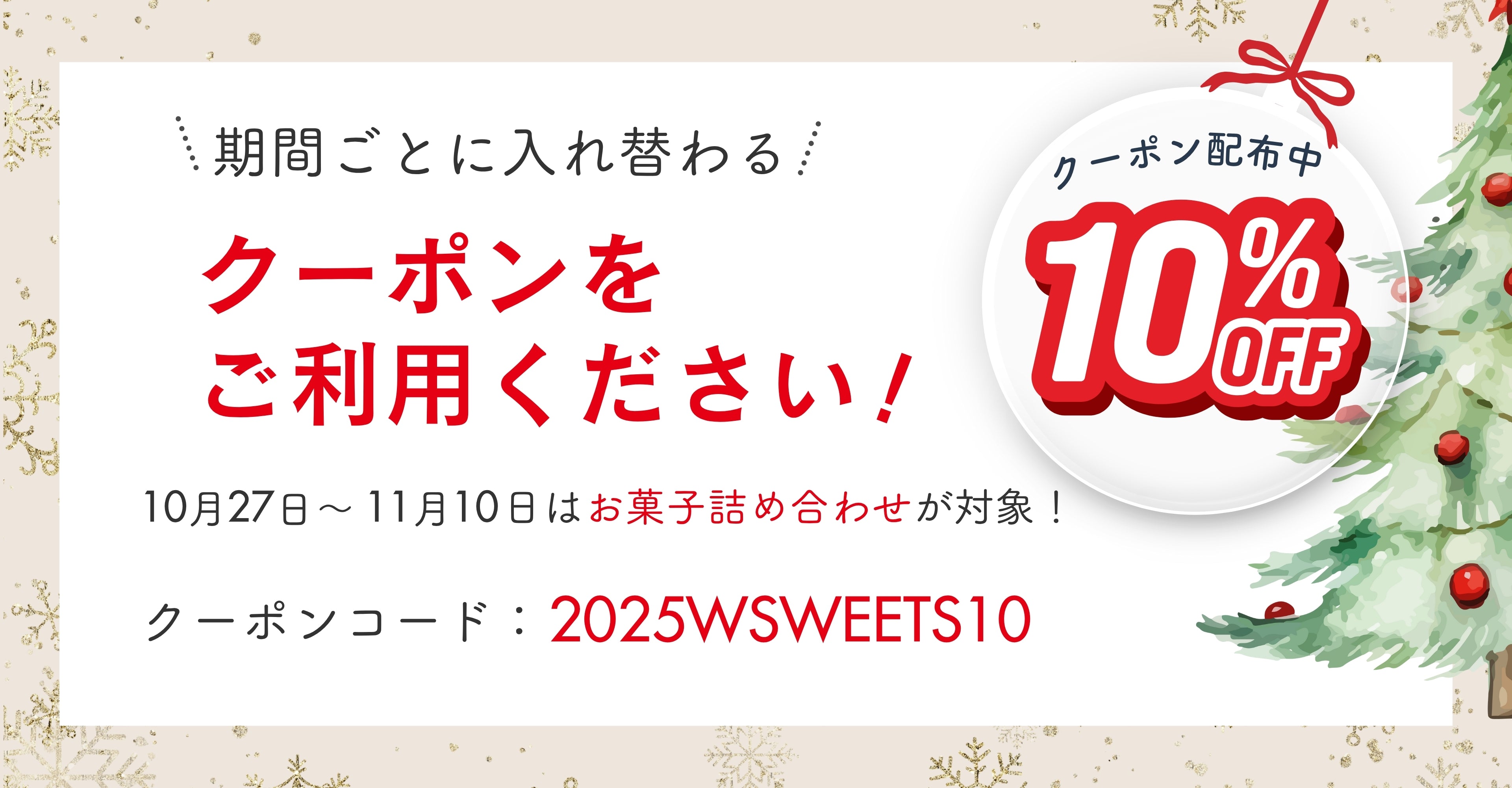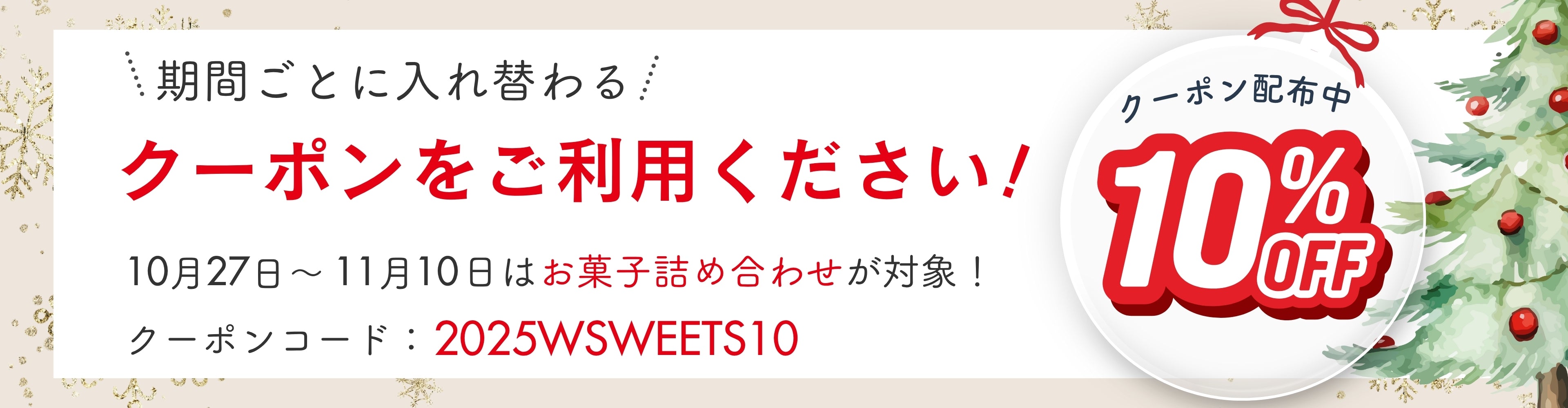 10月27日(月)~11月10日(月)は、お菓子詰め合わせの10%OFFクーポンをご利用いただけます。