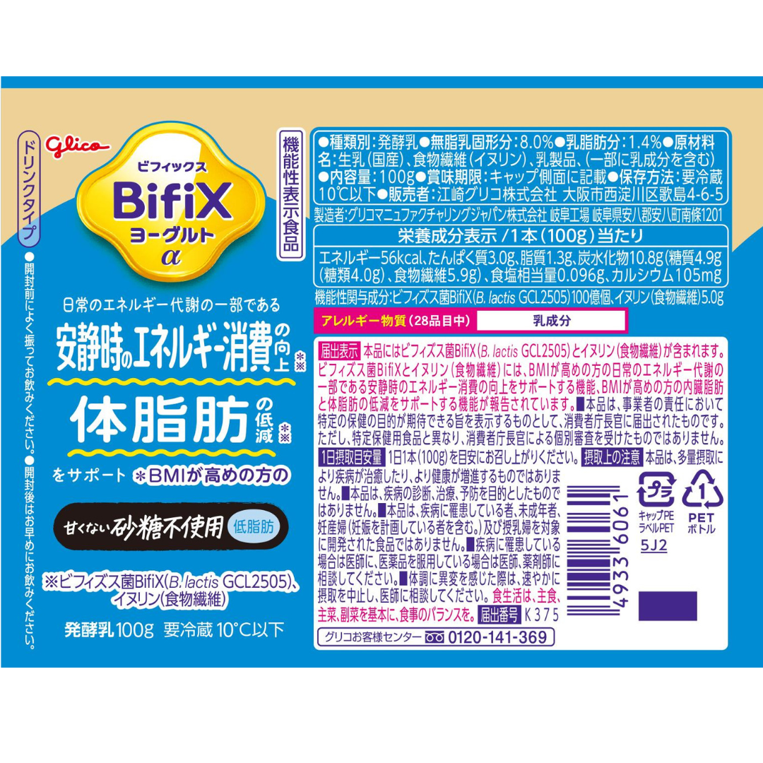 【体験モニターキャンペーン】BifiXヨーグルトα ドリンクタイプ <やさしい甘さ・低脂肪> 100g12本
